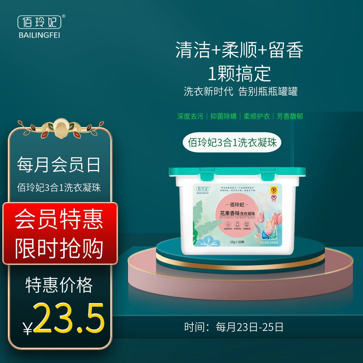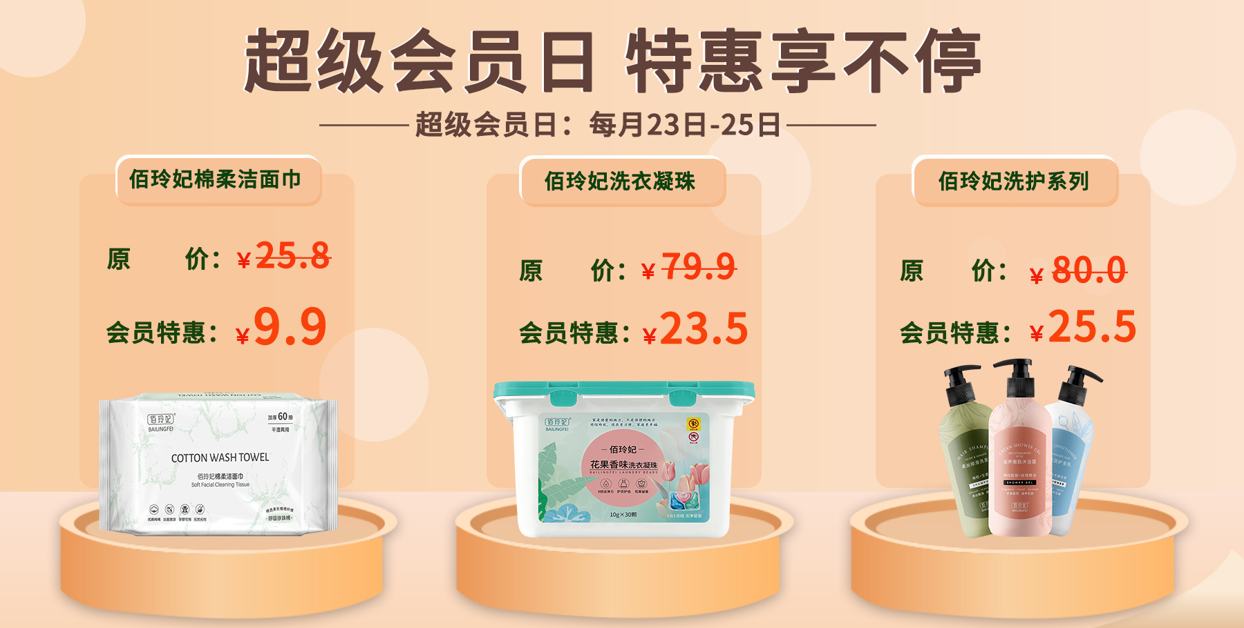 活动时间:每月23日-25日,共3天,五款日化产品平台补贴,每人每种限购2件,不要错过噢!